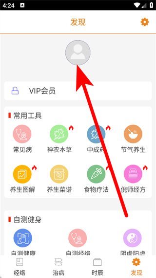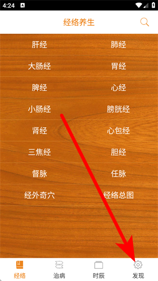 1、打开经络养生,点击底部的发现,进入发现页面。
