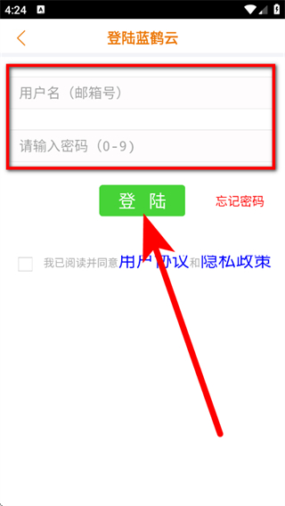 4、在邮箱登录页面,输入用户名和密码,勾选协议后,点击登陆,完成登录。