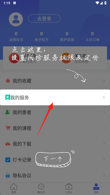 3、在我的页面功能列表里,找到我的服务选项并点击,进入后依据提示操作,可设置问诊服务权限,还能对服务定价进行调整修改。