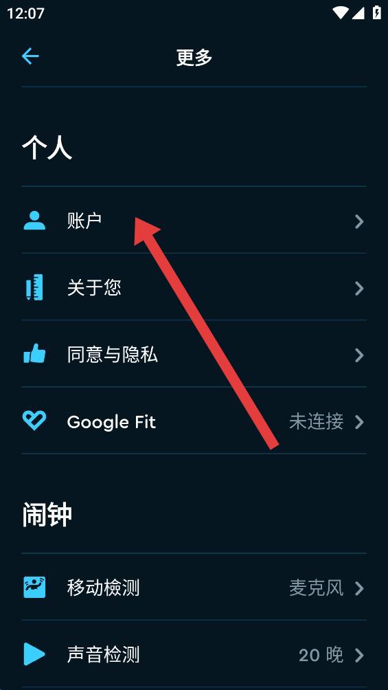 3、进入更多设置页面后,点击账户选项,进入账户登录相关界面。