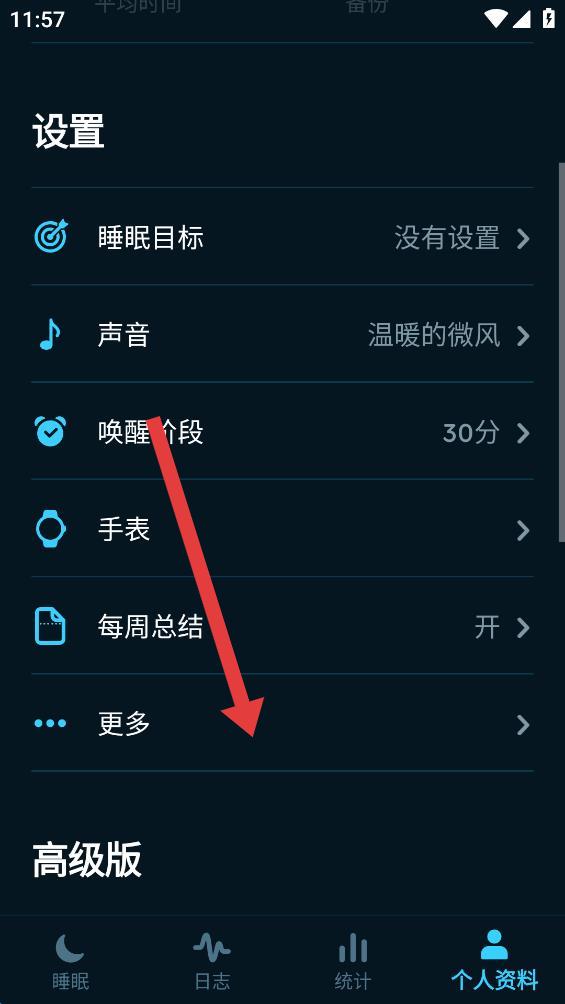 2、在个人资料设置页面里,找到并点击更多选项。