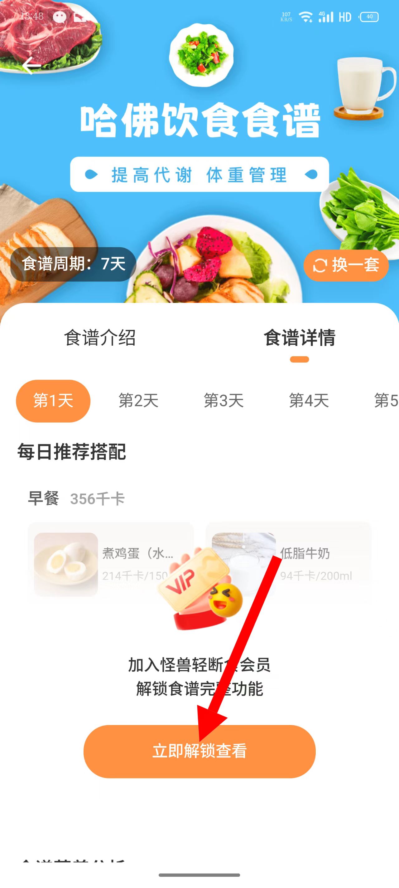 2、智能餐食推荐保证基础营养:配合断食期和进食期的营养摄入需求,提供高蛋白等健康餐食建议,避免断食期间出现营养不良问题,确保减重不影响身体健康。