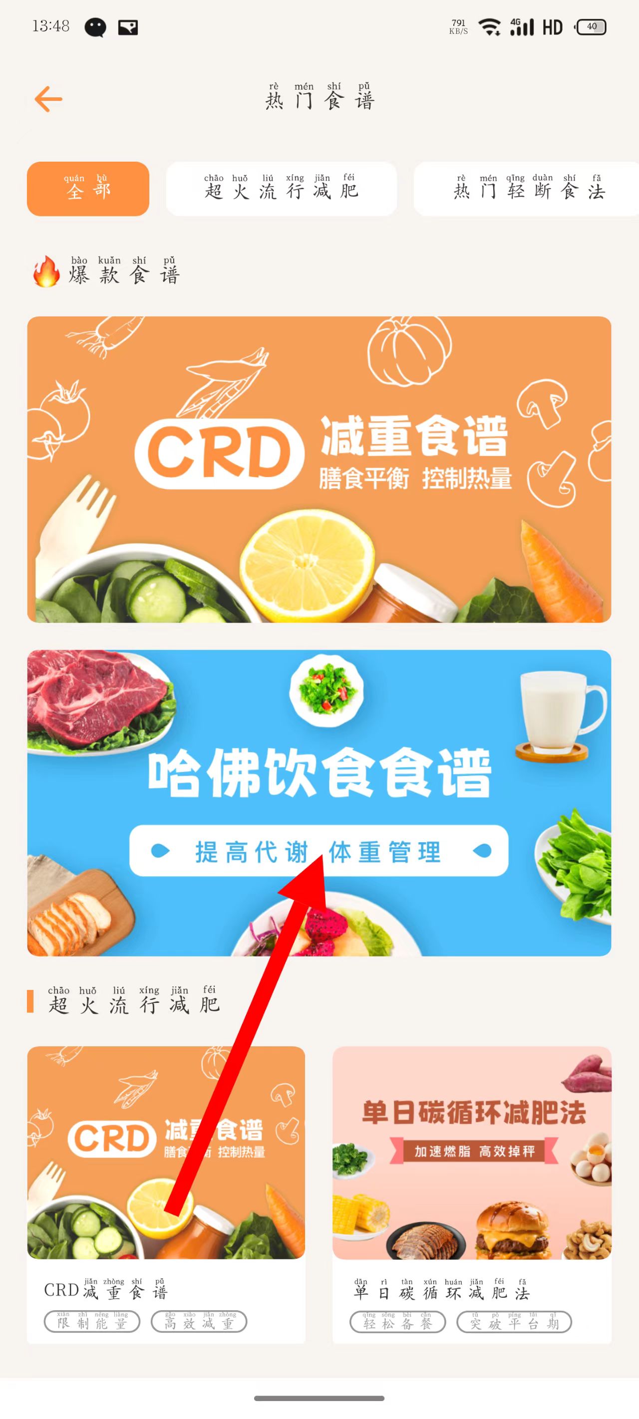 3、进入热门食谱页面后,选择哈佛饮食食谱。