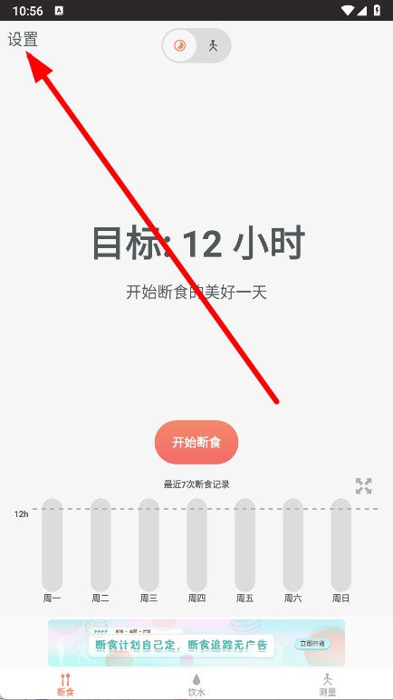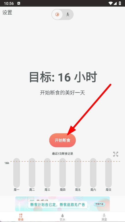 4、设置完成后,返回主页面,点击开始断食按钮,即可开启16小时断食计划。