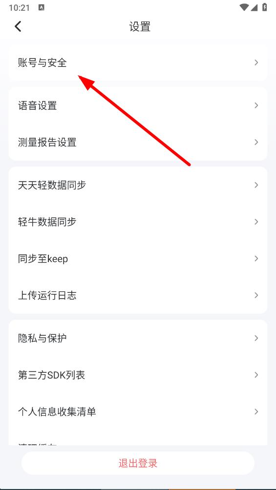 3、在设置页面里,点击账号与安全选项,进入账号安全管理界面。