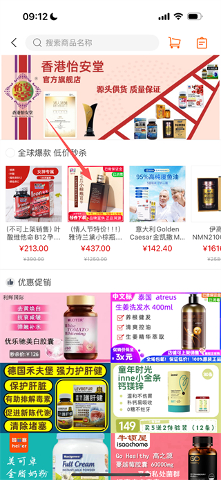 1、在药师帮首页,点击全球购选项,进入全球购商品页面。