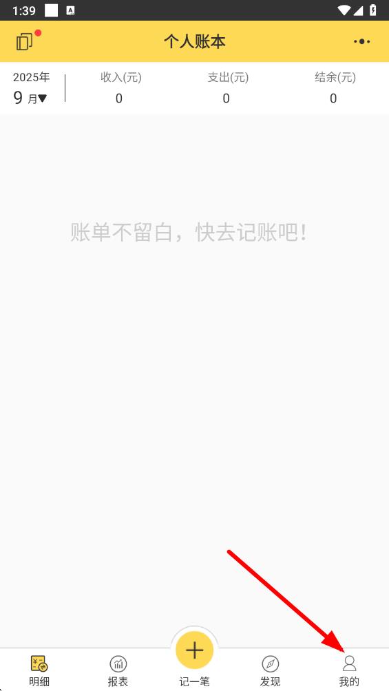 1、打开预记智能账本应用,点击底部导航栏最右侧的我的选项,进入个人相关界面。
