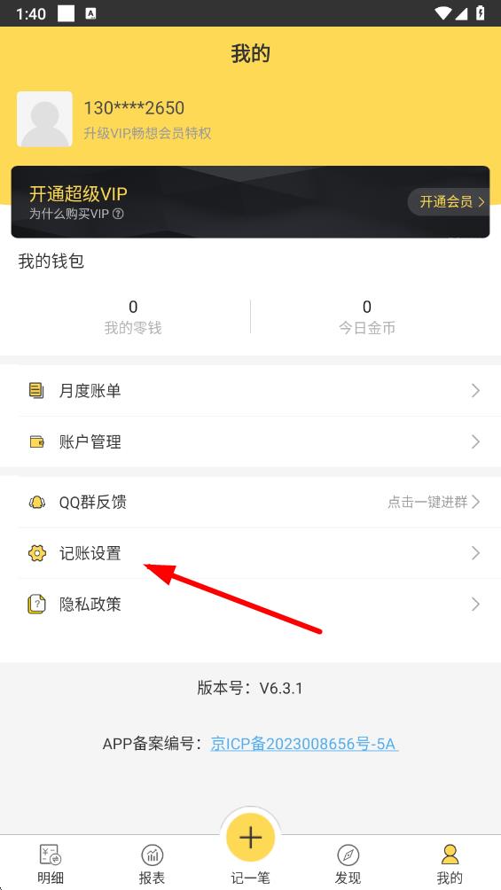 2、在个人界面中,找到并点击记账设置选项,进入记账设置页面。