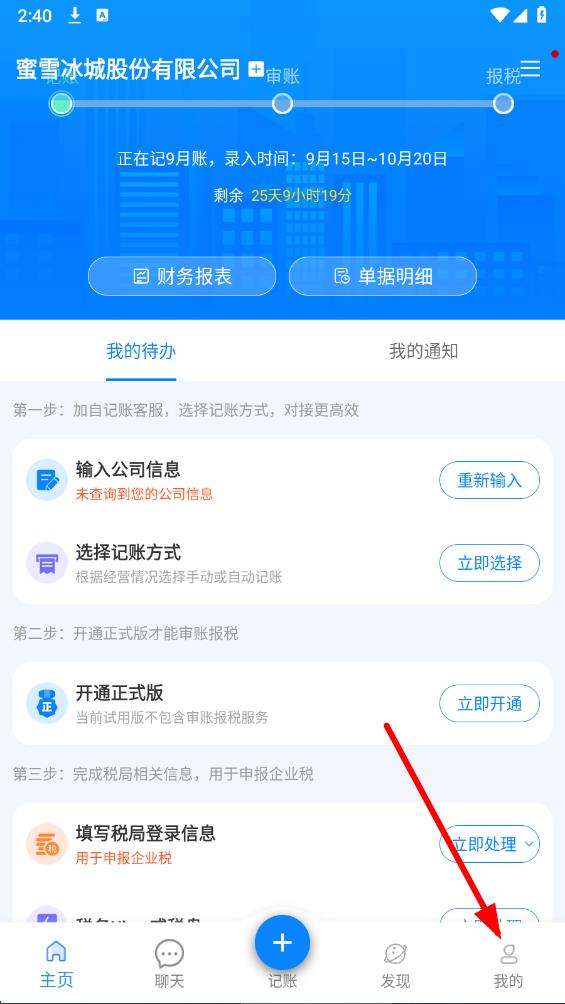 1、打开自记账app,点击底部导航栏中的我的选项,进入个人设置相关页面。