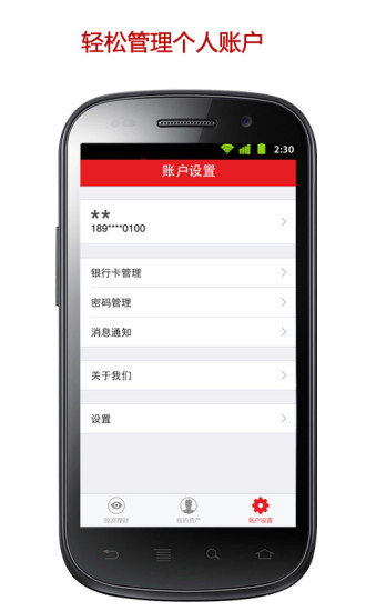 钱景私人理财是一款手机理财应用,如果你手里有点闲钱的话,不妨试试钱景私人理财。钱景私人自动理财机,钱景私人理财神器! 分散投资规避市场风险,合理组合超越平均收益!