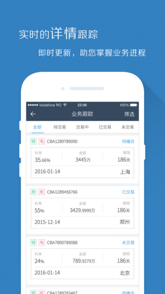 7.票据交易过程全面电子化,实现在线申报和交易过程实时跟踪;快速、全面获取货币市场实时数据、市场资讯以及行情解读。