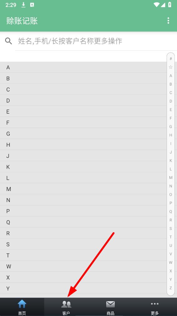 1、打开赊账记账app,点击底部导航栏中的客户选项,进入客户管理页面。