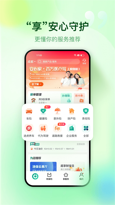 提供车险快速报案、投保方案推荐、索赔边界测算、车辆年检代办、违章查询等各种车主服务,让您轻松用车无烦恼!