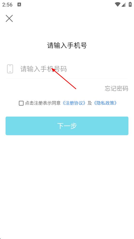 4、输入完手机号码后,勾选点击注册表示同意注册协议及隐私政策,然后点击下一步按钮,继续后续登录流程。