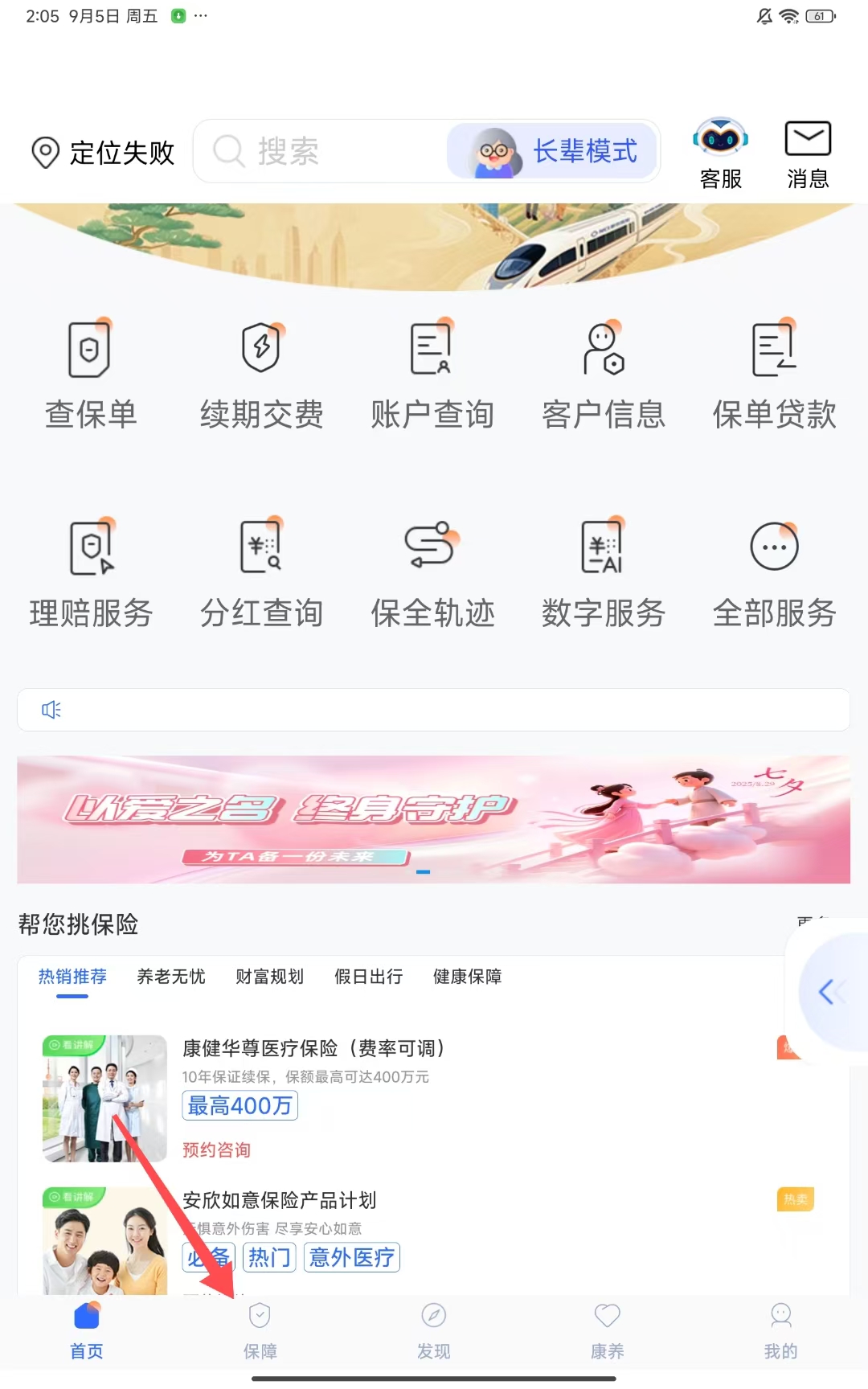 2、进入保障页面后,浏览各类保险产品,选择感兴趣的产品。