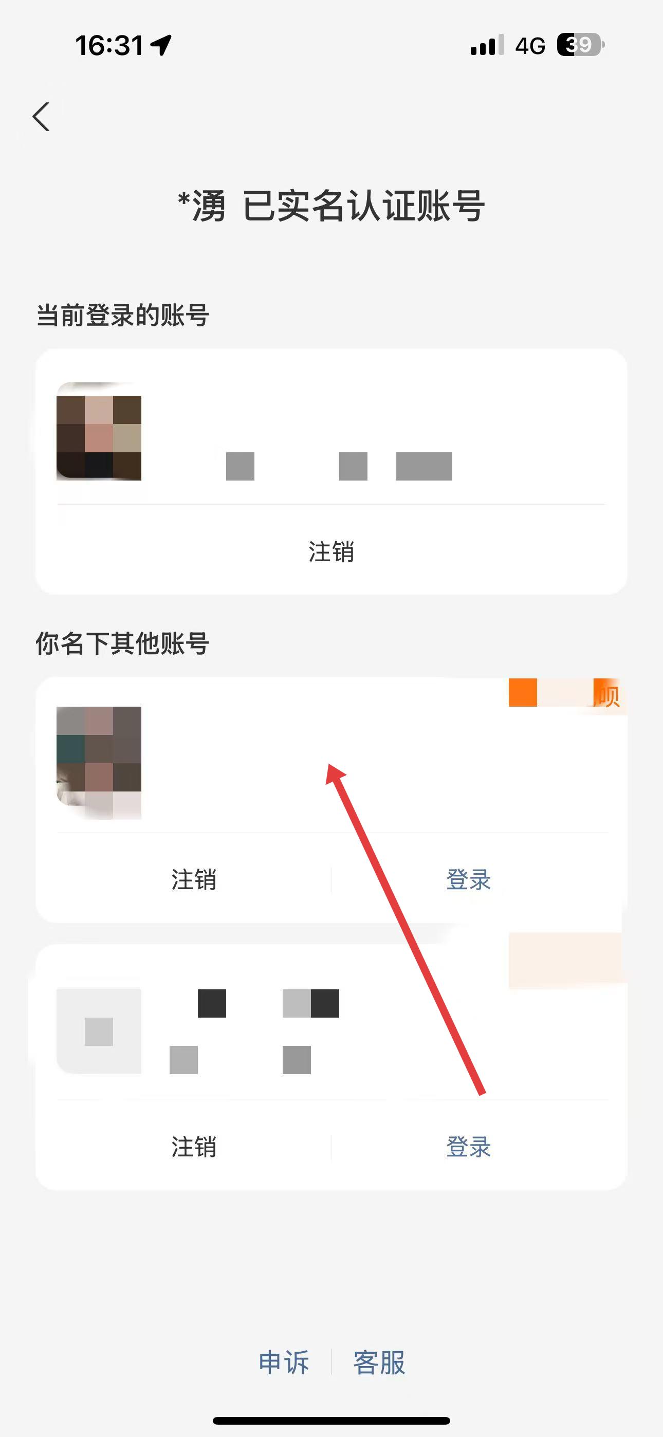 3、进入账号与安全页面后,点击名下其他账号选项。