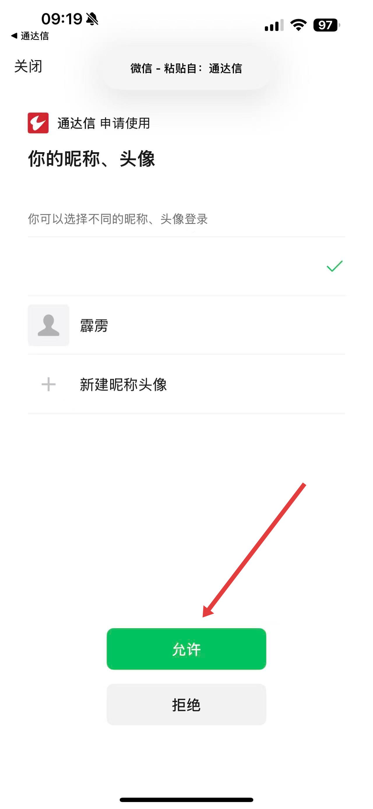 4、页面跳转后,在弹出的微信授权界面中,点击允许按钮,即可完成微信与通达信账户的绑定。