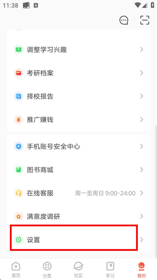 2、在我的页面中,向下滑动找到并点击设置选项。