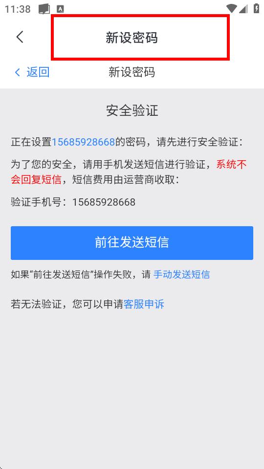 4、在新设密码页面,按照提示进行安全验证,一般是通过手机短信验证,验证通过后设置新密码即可。