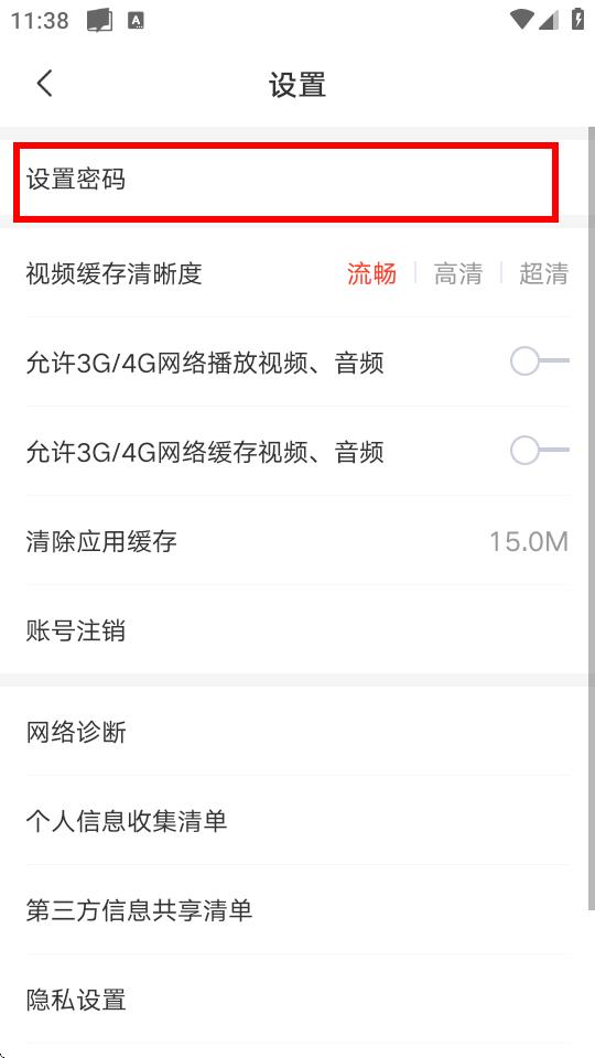 3、进入设置页面后,点击设置密码选项。