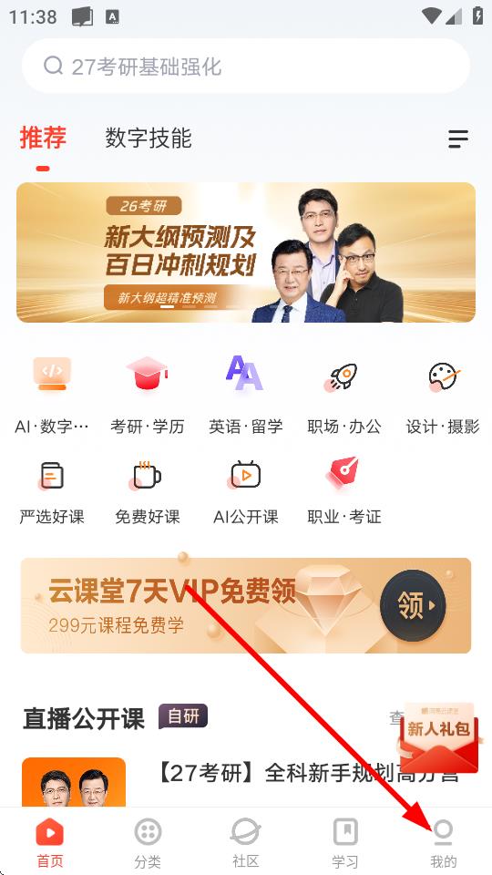 1、打开网易云课堂app,点击底部导航栏中的我的选项。