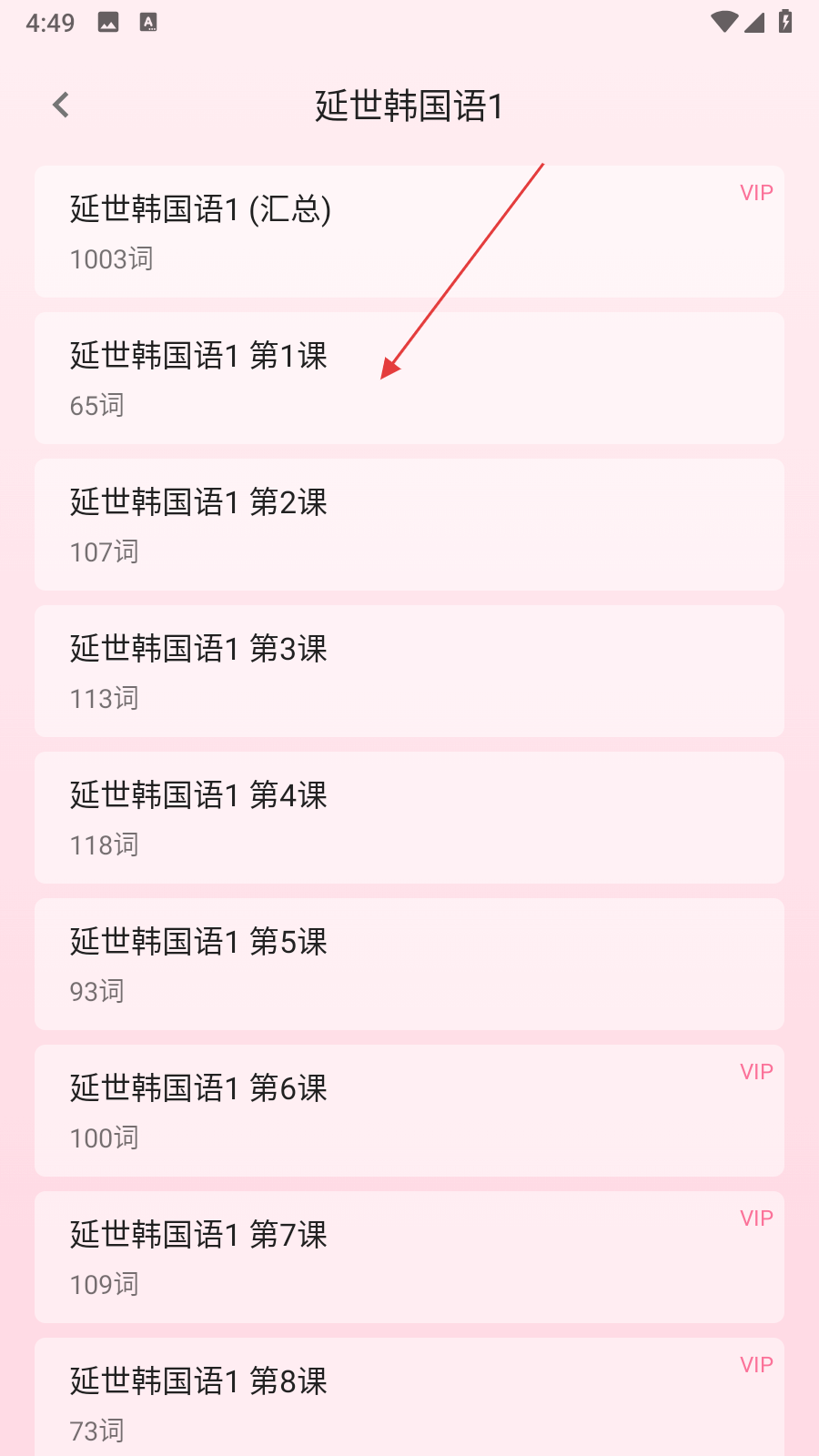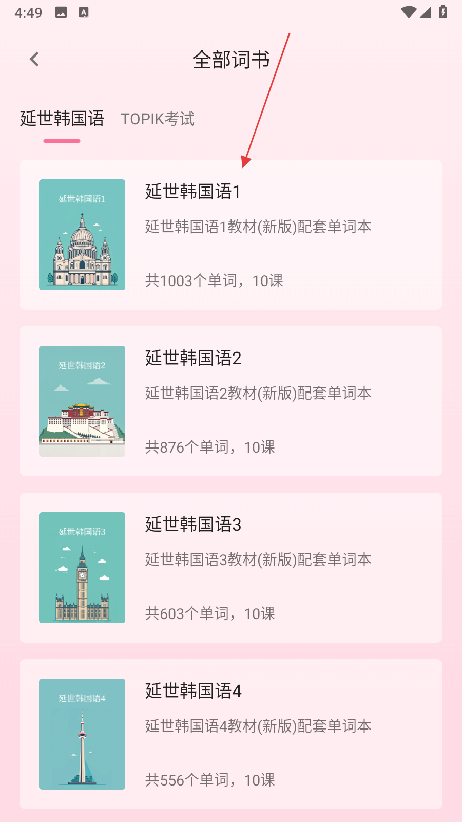 2、在全部词书页面,选择想要学习的词书,进入该词书的课程列表页面。