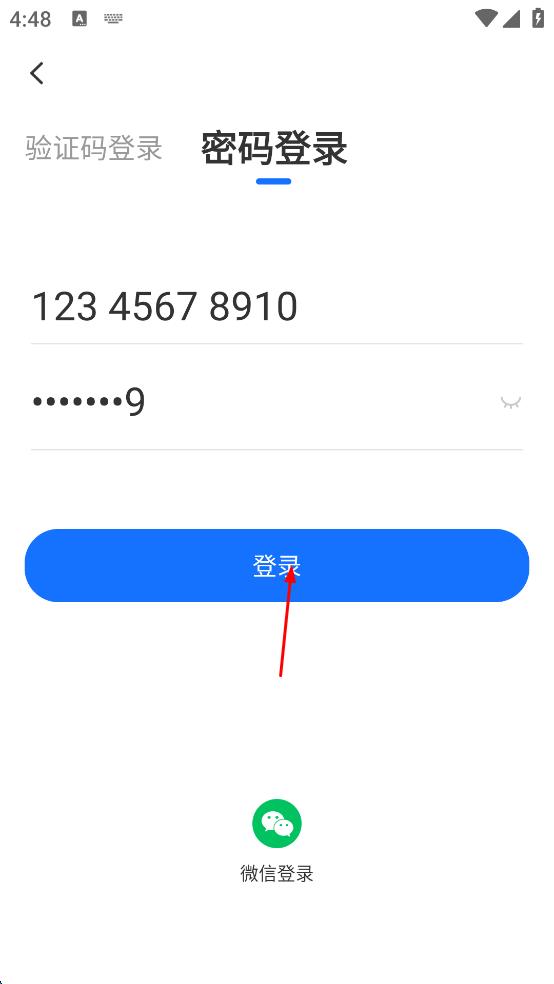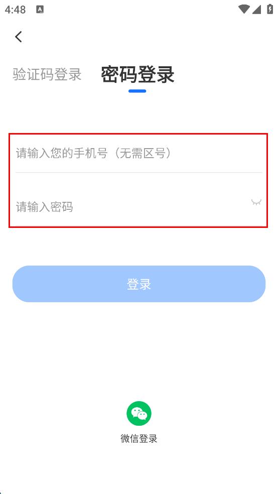 3、在密码登录页面,输入手机号和密码,确保信息准确无误。