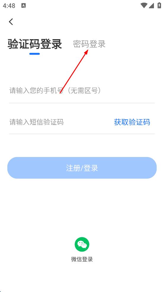 2、在登录方式选择页面,点击“密码登录”选项,进入密码登录页面。