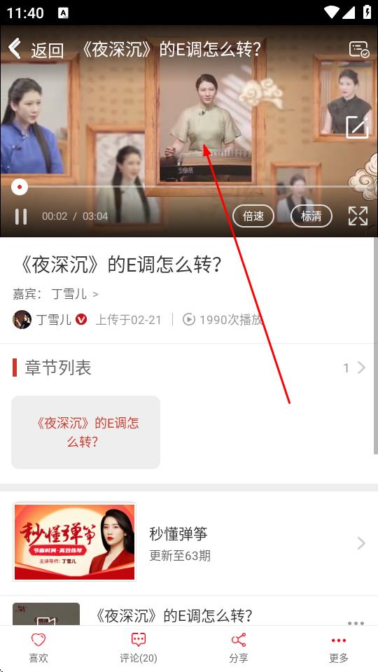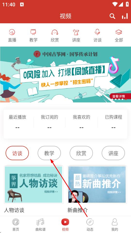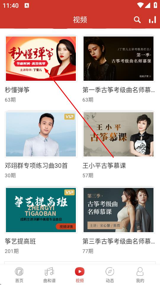 3、浏览教学视频列表,找到感兴趣的教学视频,比如秒懂弹筝,点击该视频封面图。