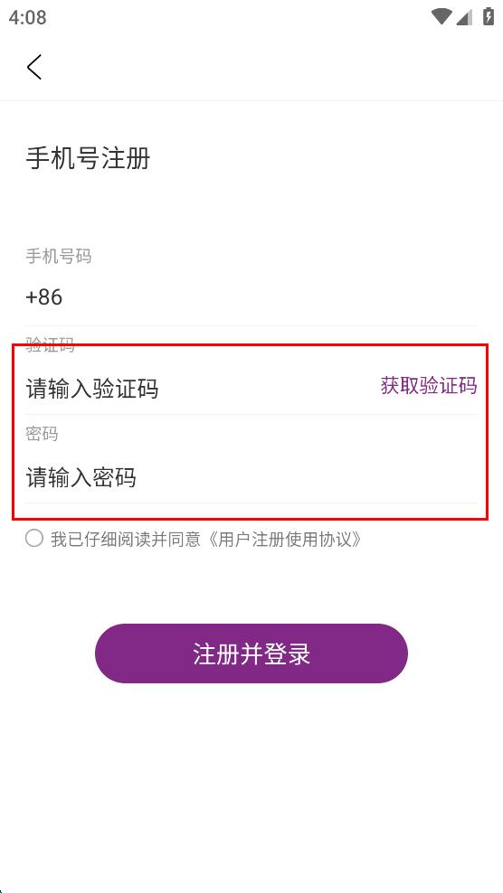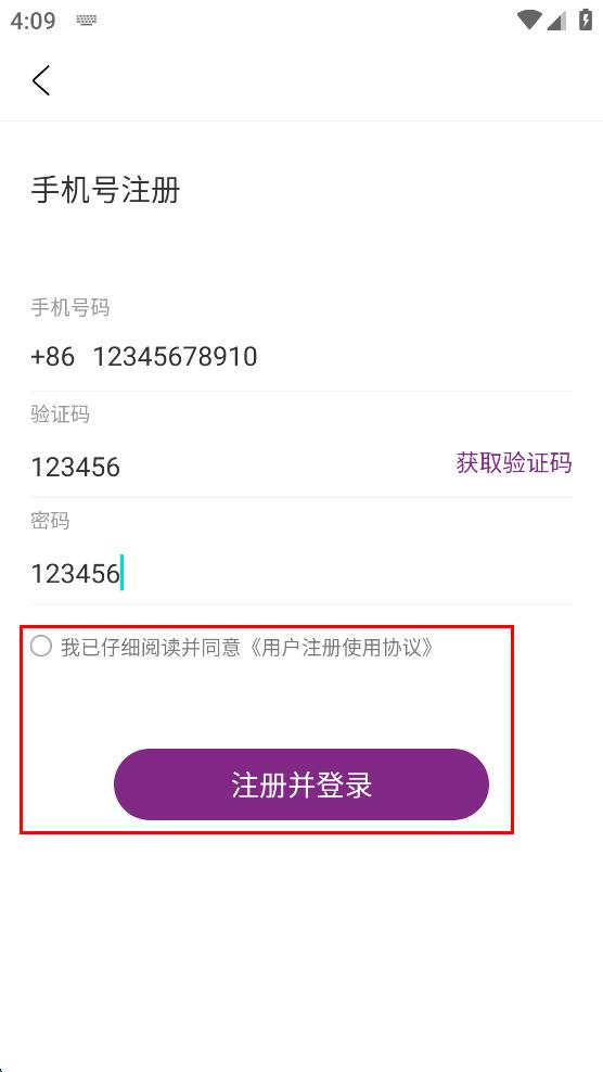4、勾选我已仔细阅读并同意用户注册使用协议,然后点击下方的“注册并登录”按钮,即可完成注册登录操作。