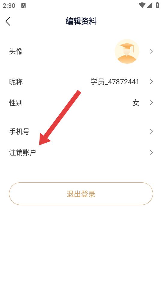2、在编辑资料界面点击注销账户,进入注销账号风险提示页面。