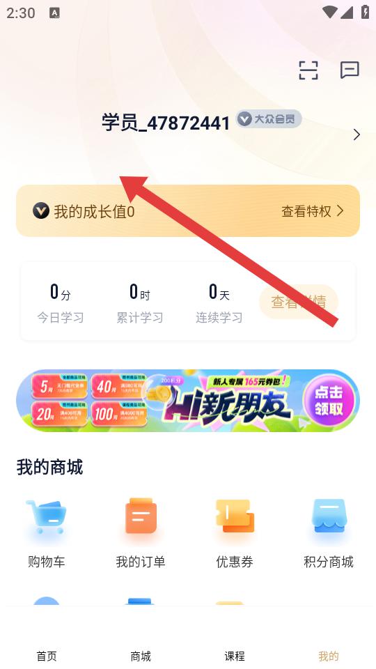 1、在我的页面需要点击账号的区域,然后进入编辑资料的界面。