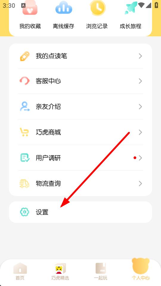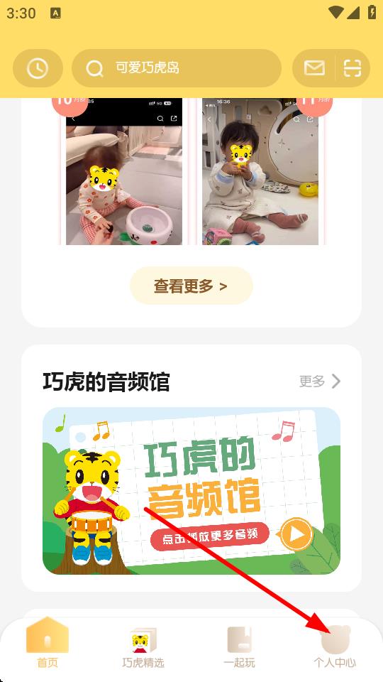 1、打开巧虎APP,点击底部导航栏最右侧的个人中心选项。