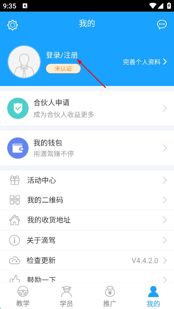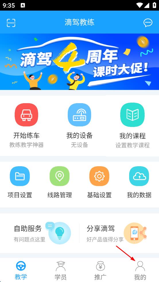 1、打开滴驾教练APP,进入主界面后,点击界面右下角“我的”选项,进入个人页面。