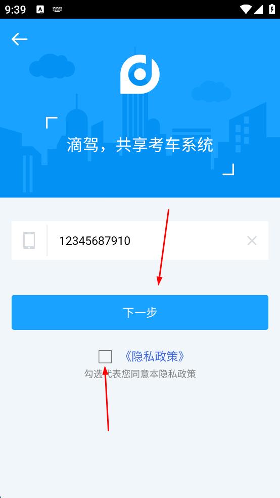 4、勾选“隐私政策”选项,然后点击“下一步”按钮,即可继续后续登录流程。