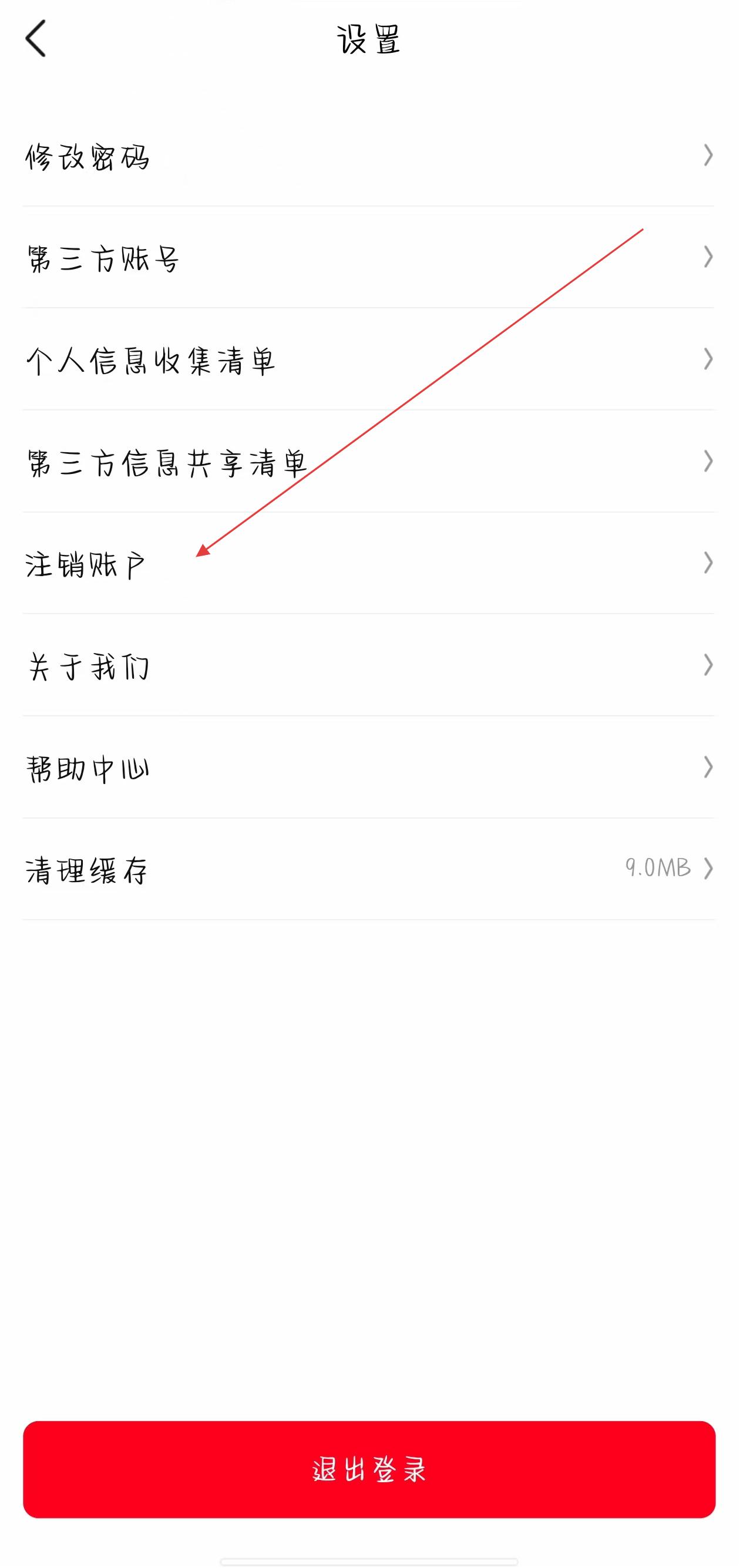 2、在设置界面中,找到注销账户选项并点击,弹出弹窗。
