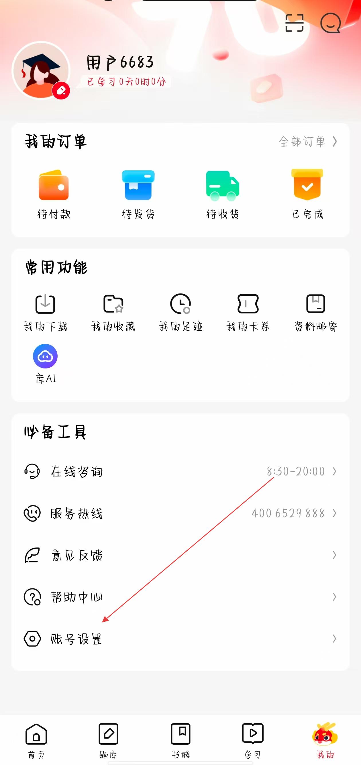 1、打开库课网校APP,进入个人页面,在必备工具区域找到账号设置选项并点击。