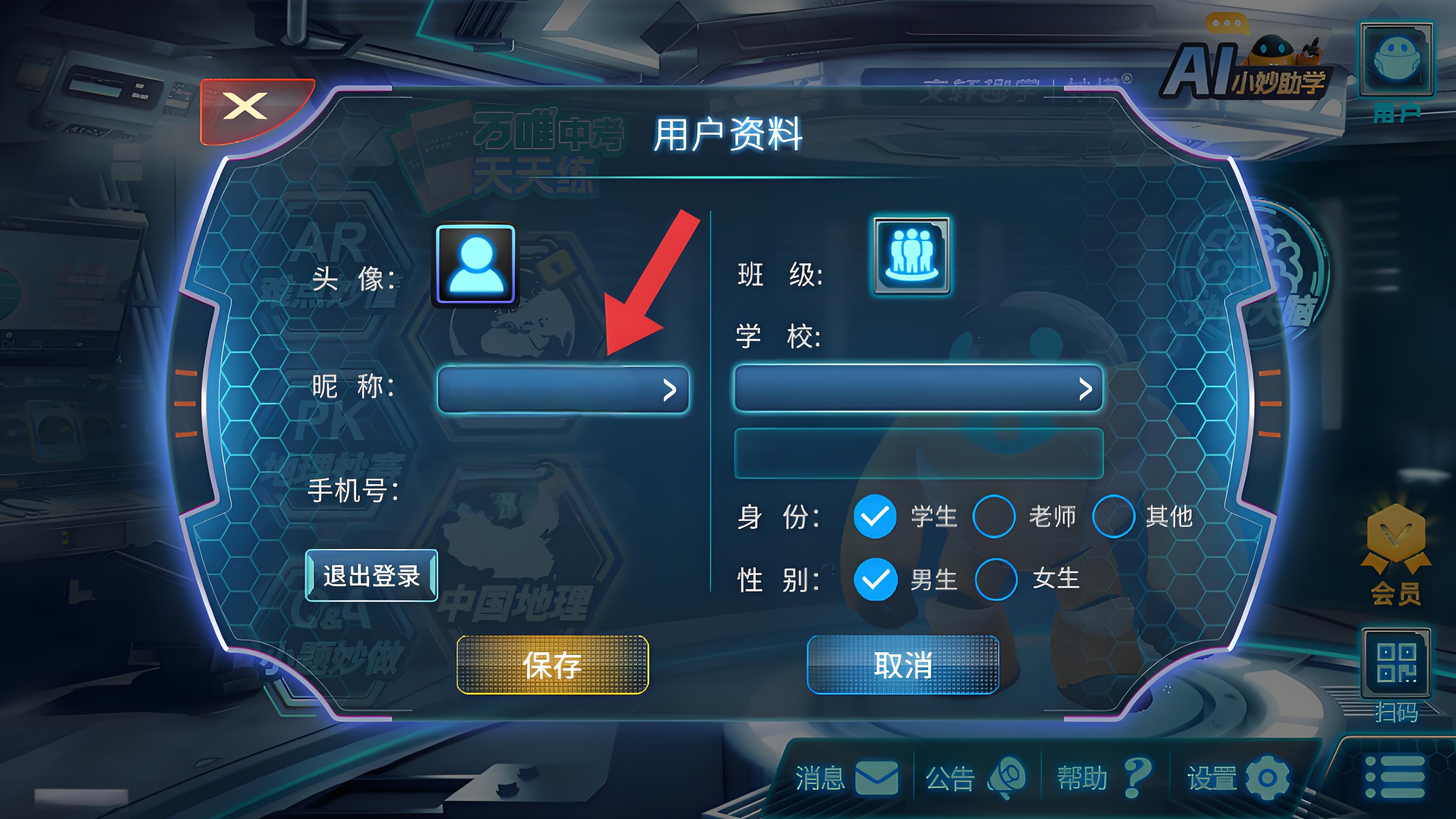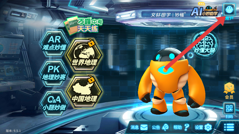 1、打开妙懂地理APP,点击界面右上角的用户图标,进入用户资料页面。