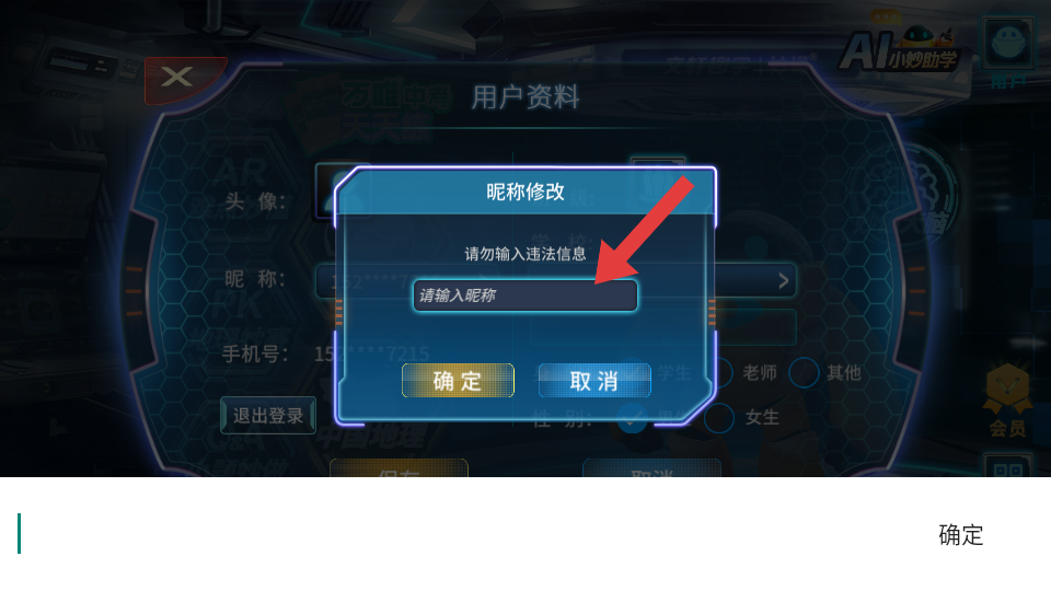 3、在昵称修改框中,输入新的昵称,需要注意请勿输入违法信息。
