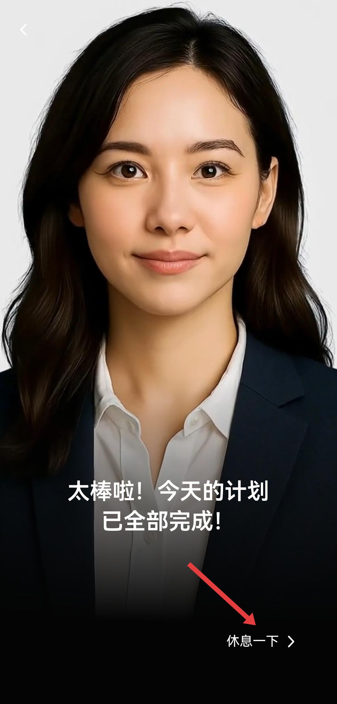 4、完成当日单词学习计划后,点击休息一下,结束本次背单词任务。