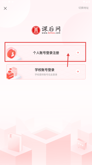 3、在登录选择界面,点击个人账号登录注册选项,进入手机号登录页。