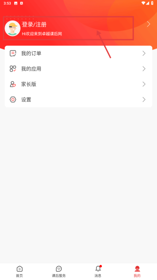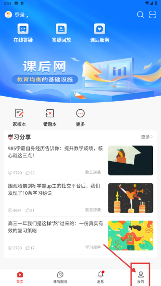 1、打开课后网应用,点击底部我的选项,进入个人中心页面。