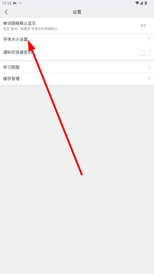 3、在设置界面里,点击字体大小设置选项,进入字体选择页面。