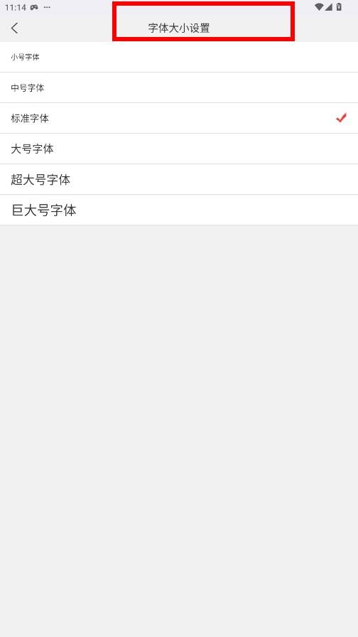 4、在字体大小设置页面,选择所需的字体大小,即可完成设置。