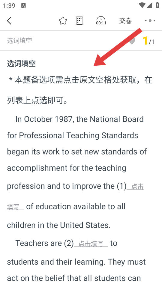 4、进入后即可查看具体的做题内容,如选词填空的题目和答题情况。