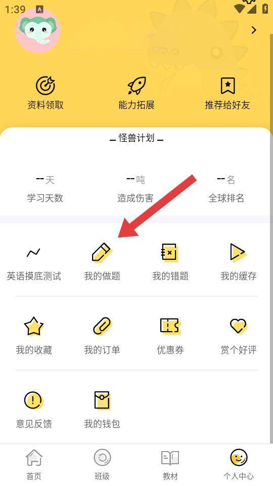 2、在个人中心的页面,点击我的做题,进入做题记录的界面。