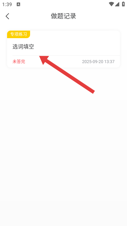 3、在做题记录的界面,选择要查看的做题记录,如选词填空。