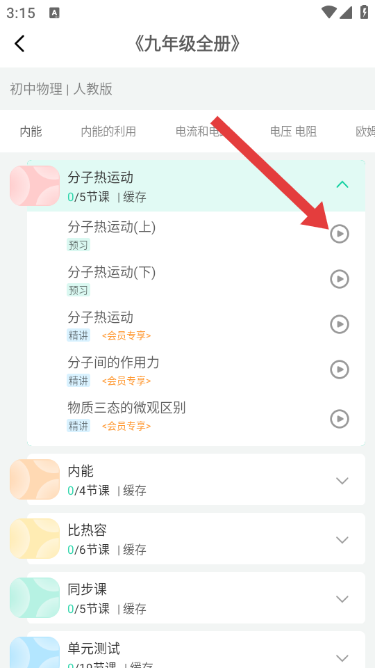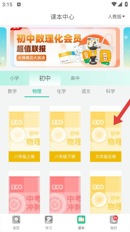 1、在课本中心选择目标的教材,进入教材章节的列表页面。