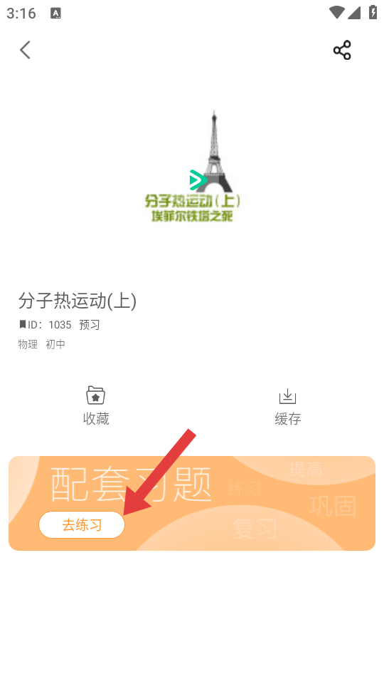 3、在课程详情的页面需要点击去练习,进入配套习题做题界面。