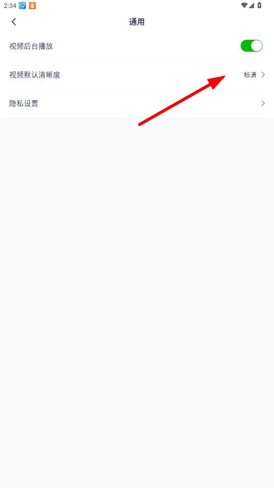 4、在通用设置页面中,点击视频默认清晰度选项,选择想要设置的清晰度,即可完成视频清晰度的修改。